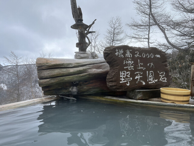 宿に着いたら真っ先に向かうのは雲上の野天風呂。