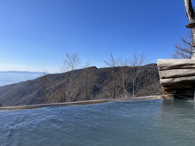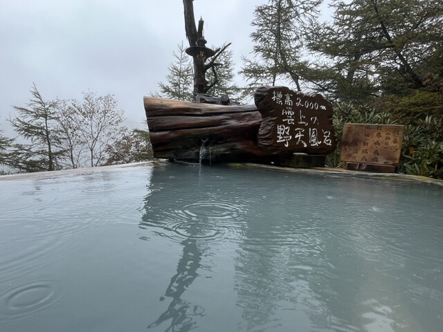 午後1時にチェックインして、早速、雲上の野天風呂に浸かります。