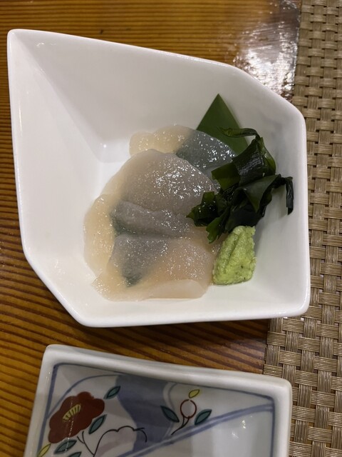海魚の刺身はありませんが、冷たいお刺身こんにゃくをわさびとともに美味しくいただきました。