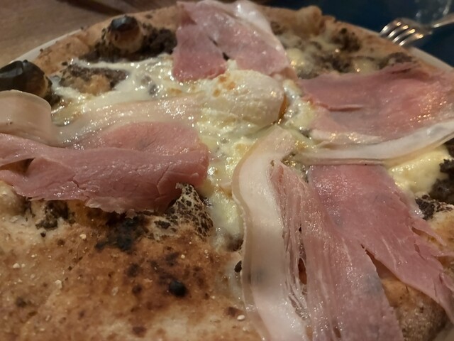 ピザ類は生地は薄いけれども、思った以上にもっちり。マルゲリータのトマトソースがとってもトマト…さっぱりといただけました。ハンプティダンプティは半熟卵が生ハムに絡み、そこにマッシュルームソースで味がきゅっとしまって美味。