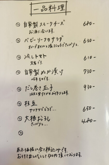 と言う事で、この一週間殆ど呑まずにいたら、これが効いたのか、三連休に我が「胃」も浮かれたのか、食欲も湧いて来た。そんな時、ヨシと浮かんだお店がコチラ。当日17時過ぎてたかな、「18:30から空いてますか」と電話したら20:00までなら大丈夫とのこと。ではではと外出先からお店に。ガッと呑んでガッと食べるの得意な自分、全然平気。