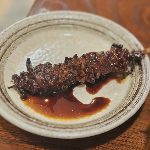 とりわさ: お醤油少し加えてと言われたけれど、そのまま頂く。鶏ささみに旨みがあって、きざみ海苔と三つ葉で十分美味しい。ささみの風干し: 七分位にドライのささみが、サッと軽く炙られてる。エイヒレや鮭とばに近いかな、天日に 干されて旨みが凝縮されてる。