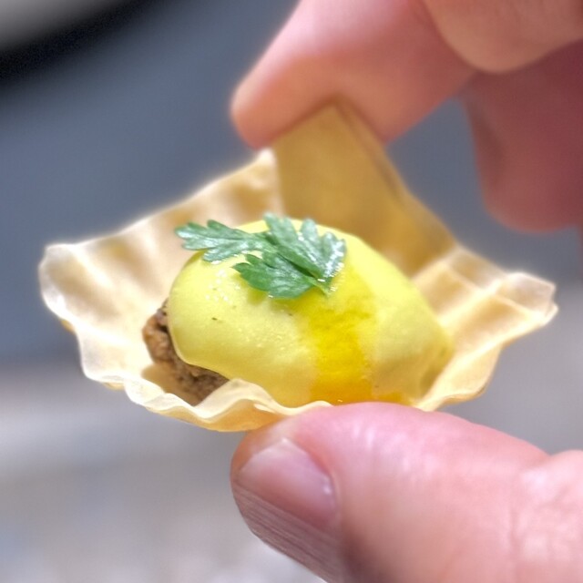 口の中でグシャッとすると、ゴルゴンゾーラの風味。他にもペルーの唐辛子の何とかと何とか…と説明聞いたけれど覚えきれず…幾つもの味が重なる未体験の美味しさ。