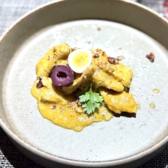 チキンのクリーム煮。田舎料理っぽさがイイ。ミルクとパルミジャーノで柔らかな味わい。アヒアマリージョは唐辛子の一種らしいけれど辛くない。パプリカみたい。