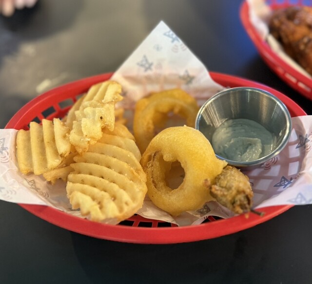 ツマミはシンプル。お昼だったのでチキンウイング6 pc コンボ、後からチーズボールだったかな。クラフトビールがメインディッシュと思えば、これ位の軽いメニューが丁度イイ。