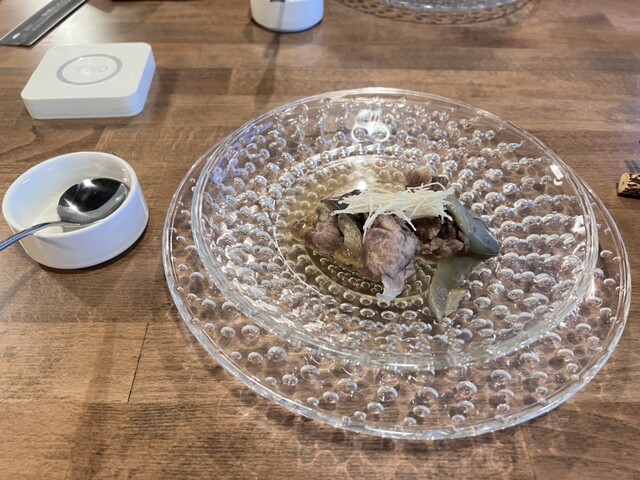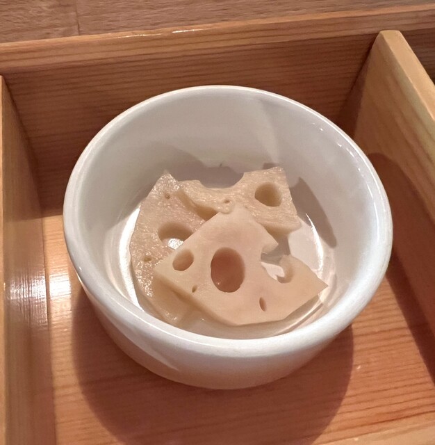 4皿目はすっぽん!初めて食べましたが、白身魚とお肉の間のような。お肉のようなかみごたえと、白身魚のような身がギュッと詰まった淡白なお味です。