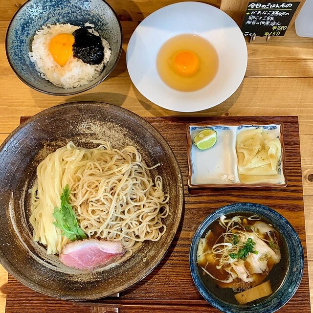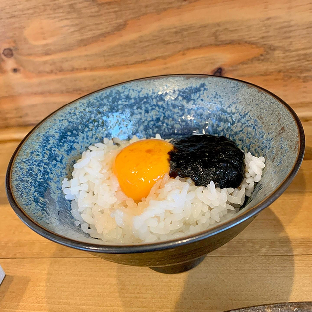 サイドは別皿でオーダーした海老ワンタンと名古屋コーチンのTKG有明海苔の佃煮添え