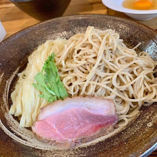 つけ汁のスライスされたチャーシューも素晴らしく、蕩けるタイプとホロっとした肉感ある2種がつけ汁の旨味を存分に纏う