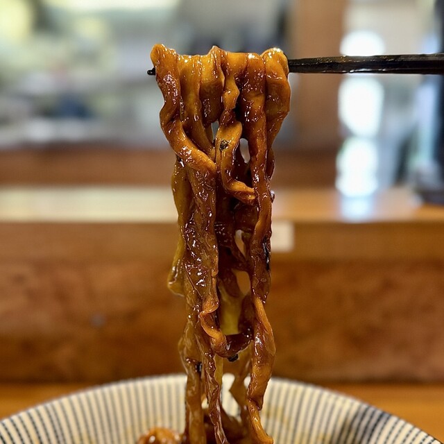 しっかり全体を和えて啜れば、ボソパツ麺の小麦の味わいとタレが合わさって良い感じ