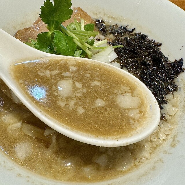 ちょいビターながらえぐみや臭みは皆無で上品に煮干しの旨味が広がる