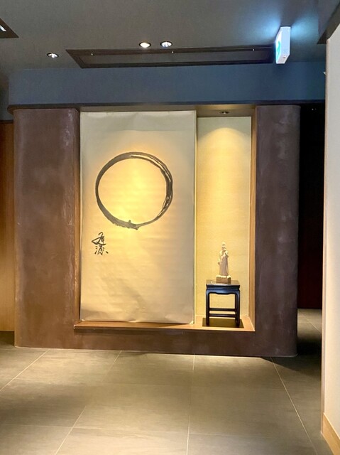 店内は暖簾をくぐると大人の落ち着いた空間。手前に個室、奥には庭の光が差し込む大きなカウンター席があり、畳のランチョンマットや携帯置きまで用意された心地よさ。