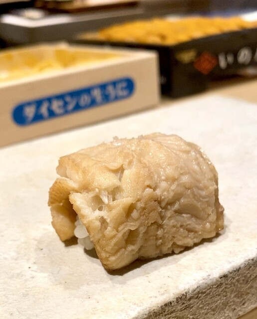 昆布の香りがふわっと広がり、引き締まった身のねっとり感と深い旨み。