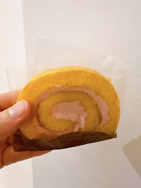 いちごのロールケーキは、いちごのクリームが絶品で、酸味甘味が最高に食べやすい!
