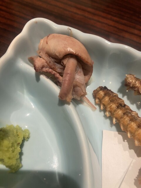 【骨せんべいと肝わさ】をツマミに重を待つ。