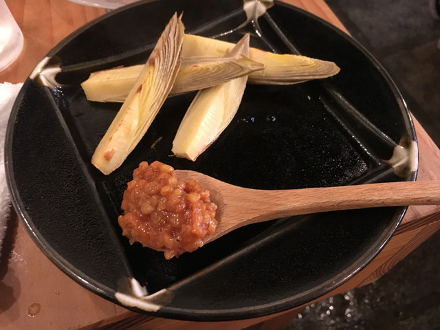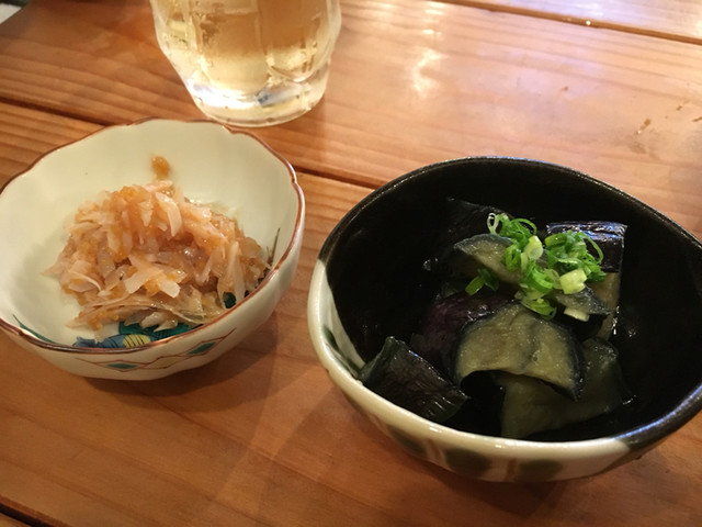 ポテトサラダの上にわさびの刻んだやつ。かなりアリ。そして、旨し。