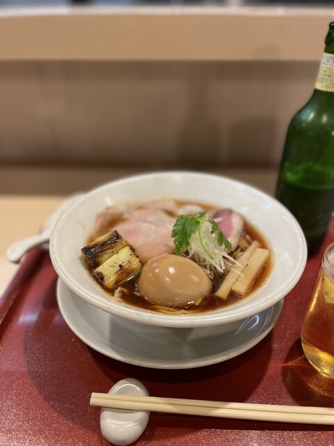 味玉紀州鴨そばとハートランドを注文じ、程なく配膳。