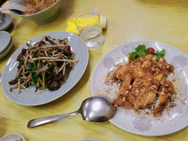 ニラレバ、餃子、ユーリンチー、味噌ラーメン、炒飯、中華飯などを注文。