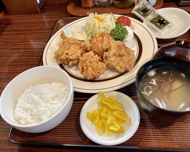 我が家の陛下はご飯半分でお願いするも、デカいザンギ2個で撃沈。
