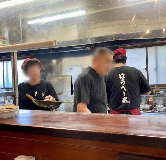 いつもの通り店主はガンガン音を立てて中華鍋を振りまくってますが結局、私達が帰るまで長蛇は続いてました。