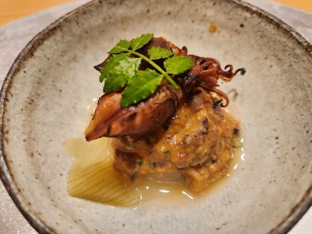 神楽坂の小道を抜け、階段を上がると現れるカウンター6席の舞台。そこは「初志」の名の通り、原点への祈りが漂う空間だった。愛媛・宇和島から届く鮮魚は、どれも素材の輪郭がくっきり。