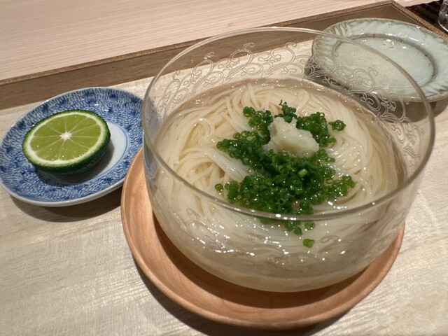 広尾の住宅街奥、和庭園のアプローチを抜け木の一枚板カウンターに向かうと、目の前に“瞬間を楽しむ料理”が広がります