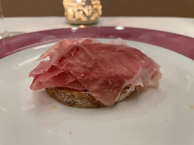 生ハムのお店っていう印象が私の中では強くて生ハムもそれはそれは美味しかったですが、第一部のお料理がとっても感動して印象に残りました。全部本当に美味しすぎました。絶対また伺いたいです。