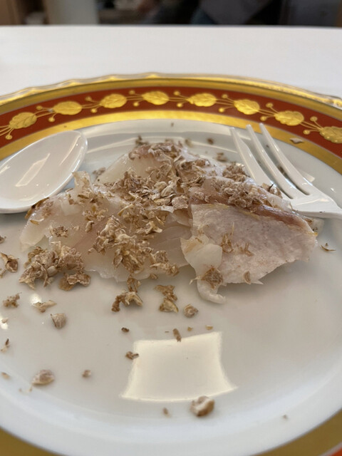 はじめの逸品 分厚く切ったヒラメ、白トリュフ