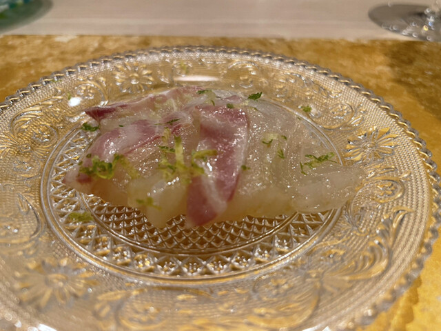 雲丹と卵黄のソース 甘海老のカルパッチョ