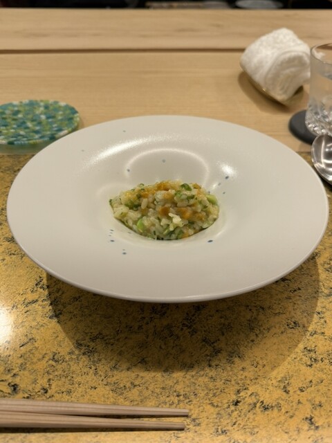 ホタルイカに山椒みたいなやつが入ったリゾット