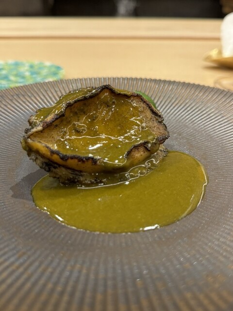鮑肝 緑茄子の焼き茄子のソース すだち