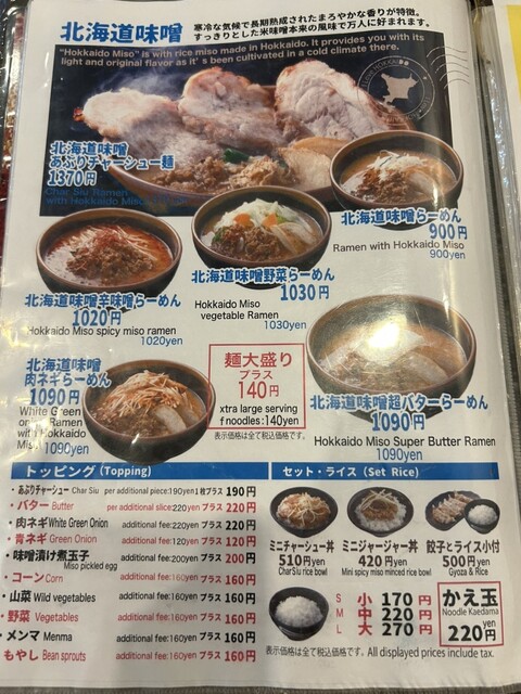 今回は北海道味噌ラーメンにチャーシューをトッピング。