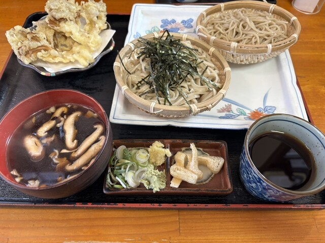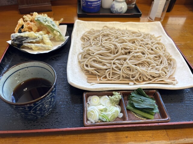 夏場のそばは非常に残念だったが、やはり新そばは全然違う。予約帳に一人と記してしばらく待つ覚悟でしたが一人席空いたのか、3.4組飛ばして入店、ラッキー!さて、いつもの野菜天を大盛りにて注文。程なく提供。いいですネ!色も艶も喉越しも最高。ひっきり無しにお客さんが訪れて忙しいですね。こちらは値段も安く、蕎麦つゆたっぷり、野菜のおひたしもサービス。てんぷらのあげ方が上手です。そばつゆをそば湯で割り今日は非常に万足です。ただこちらのマイナス点は一般道からの出入りが極端に不便で新座から入りは難しいところです。