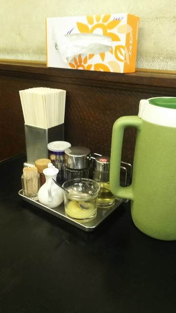 お昼 ちょっと前に到着♪ すでに4名の方が ラーメンを啜っておられます(*´∇`*) うまそうですね~(o^-')b ! お一人樣だらけで 各テーブルに一人ずつ…(^^; 私は 相席をお願いしたけど すぐに 空いて 一人でテーブル席へと Aセットをお願いしました♪(*´∇`*)