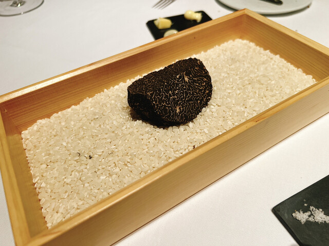 お魚は「クエ」「お肉は土佐赤牛のフィレ」特大トリュフをたっぷりかけて