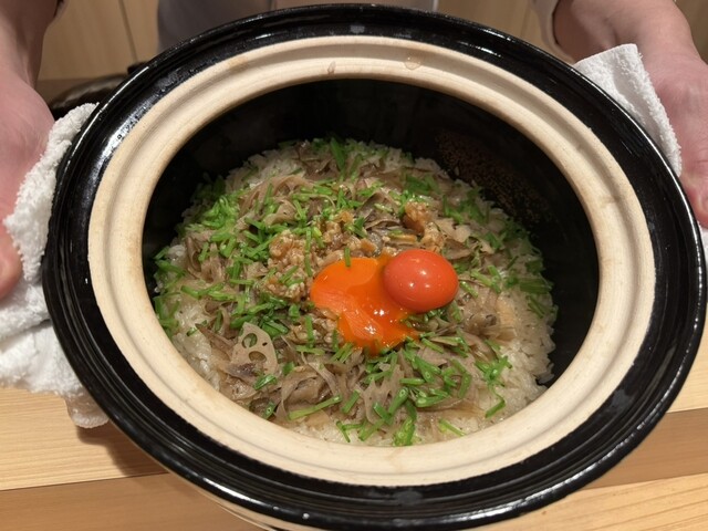 DAIAさん名物の2種の土鍋ご飯。今回は、金目鯛 銀杏 菜の花 椎茸と、牡蠣 海苔 三つ葉でした!!特に金目鯛の方が最高で2杯おかわりしました!