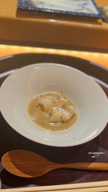 中盤には、白子のキャビア混ぜごはんや白トリュフと雲丹ソースの伊勢海老など、和の技術に洋の香りを巧みに取り入れた意欲的な料理も登場。高級食材を用いながらも驕らず、あくまで素材の持ち味を引き出す構成に職人の矜持を感じました。