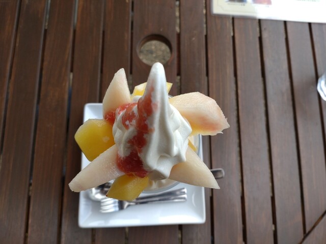 妻と一緒に、勝沼観光の際に、こちらのお店で桃パフェとぶどうのピザを頂きました。 桃パフェは新鮮な山梨産の桃がたっぷりでソフトクリームと素晴らしいハーモニーを奏でて、最高に美味しかったですね。ナンバーワンの桃パフェですね。また、ぶどうのピザはぶどうの甘みとチーズが絶妙で、とても美味しかったですね。