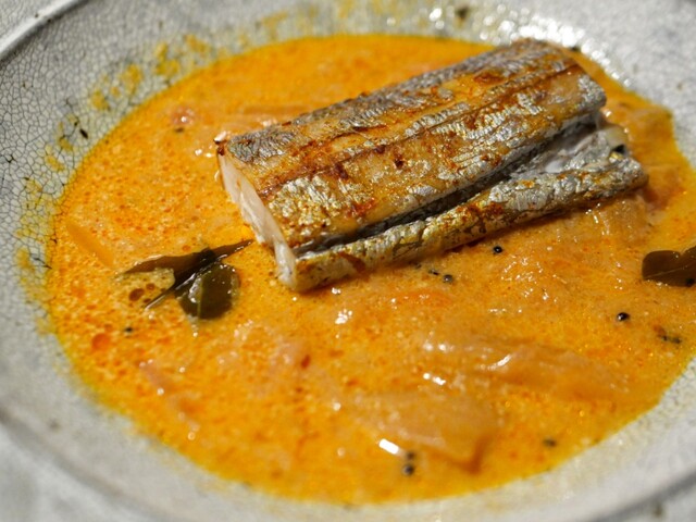 太刀魚スパイス焼き マンゴーソース、アッパム。