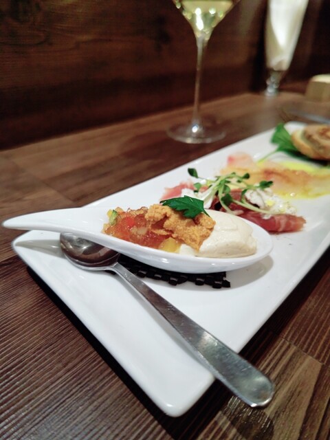 をおすすめいたします♪主観的に大好きなウニのパンナコッタスプーンサイズ、カルパッチョなど旬の前菜が並びます( *´艸)