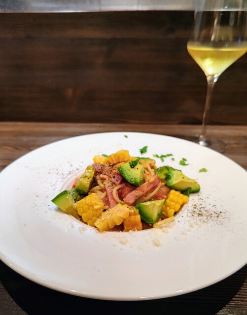 ・パスタ:アボカドとコーン、ベーコンのトマトクリームソーススパゲッティーニ ハーフで