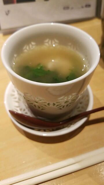 お通しで出されたのはつくね入り鶏ガラスープ。いきなり度肝を抜かれましたぞ!