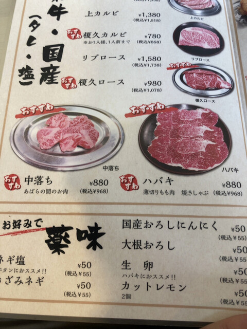焼肉が食べたく久しぶりに榎久さんに伺いました。