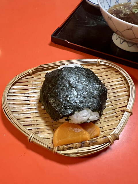 〆は、五郎さんがいぶかしそうに頼んだ、とりめんとおにぎり。