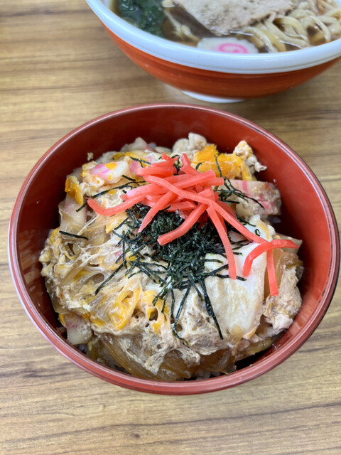 サイドのミニ玉子丼は、味付けが甘めでご飯の量もしっかり。