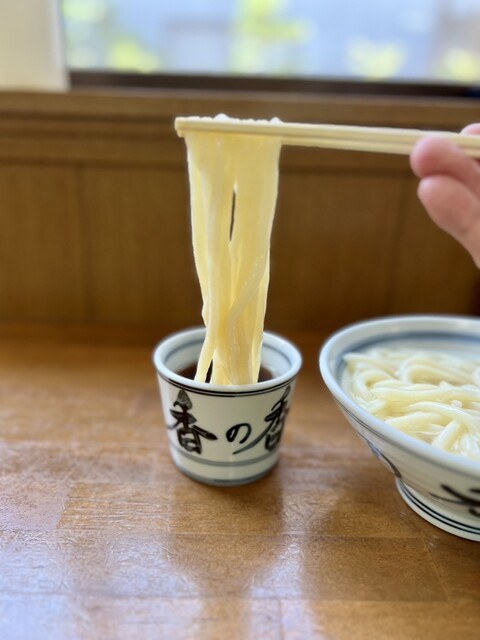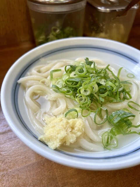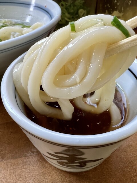 いりこが効いた香り豊かな甘辛いつゆに、長くて白いうどんを浸してするするっといただきます。
