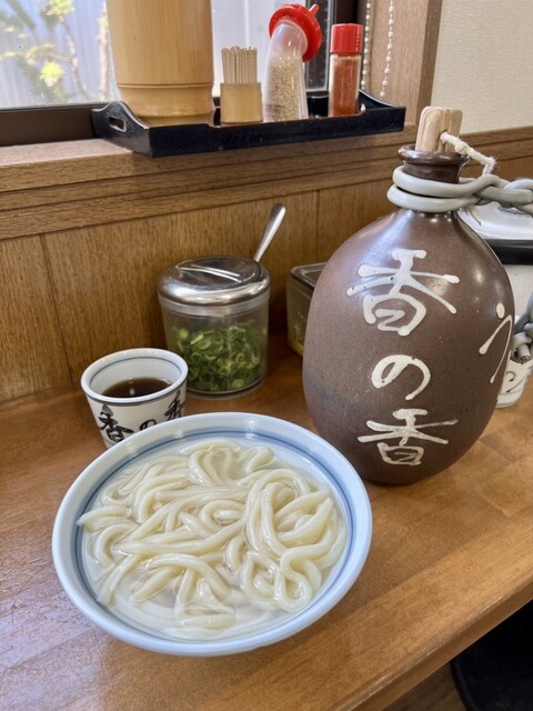 釜あげうどんの名店、つゆは大きな徳利で出てくるところが面白いです。