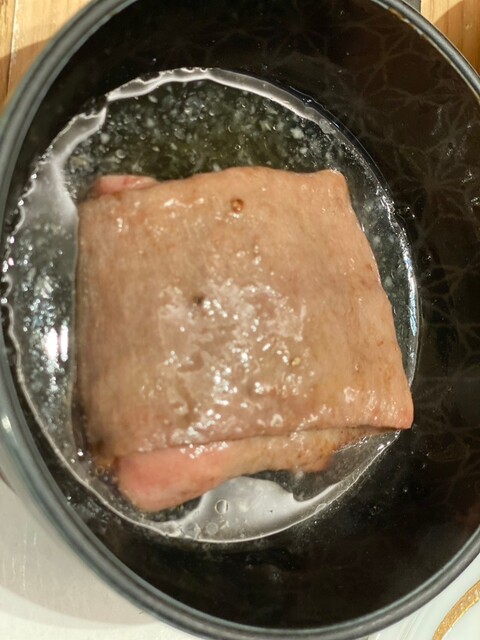 これ、今回一番美味しかったです。折りたたむことでそのまま食べる以上の食感を楽しめて、牛タンのほのかな脂身と旨味がおろしポン酢とマッチして絶品です。