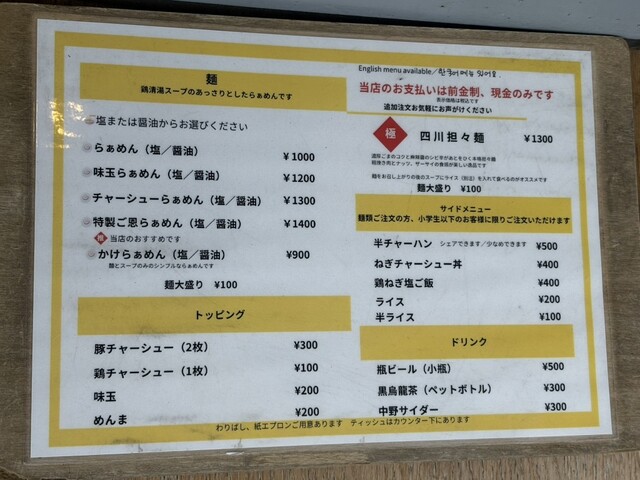 平日の昼訪問。外待ち一名に接続。頼んだもの:特製ご恩らぁめん(塩)1400円と半チャーハン500円。まずはラーメンが。澄んだ透明なスープですが、抜群の旨み、丁度良い塩味。いくらでも飲めちゃう。麺はパツパツのストレート麺。そこに鶏、豚、の増されたチャーシュー、味玉、トッピングも全て秀逸。続いてチャーハンが。これが半とは言えないくらいの量。めちゃくちゃ美味しい。そしてとても丁寧な接客。料理だけでなく素敵な時間を過ごさせていただきました!