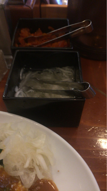 こちらの店の福神漬けとタマネギの酢漬けはカレーの辛さを中和するに最高の付け合わせです