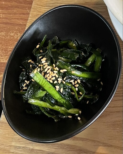 ホワイトボードに書かれていた旨辛ニラ¥100を